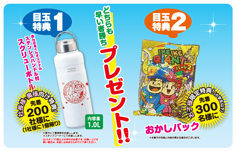 先着300名様(小学生以下) おかしパック プレゼント!
