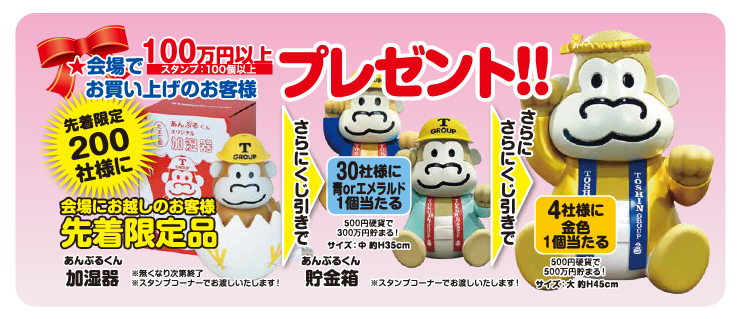 さらにさらにくじ引きで 金色のあんぷるくん貯金箱 プレゼント!