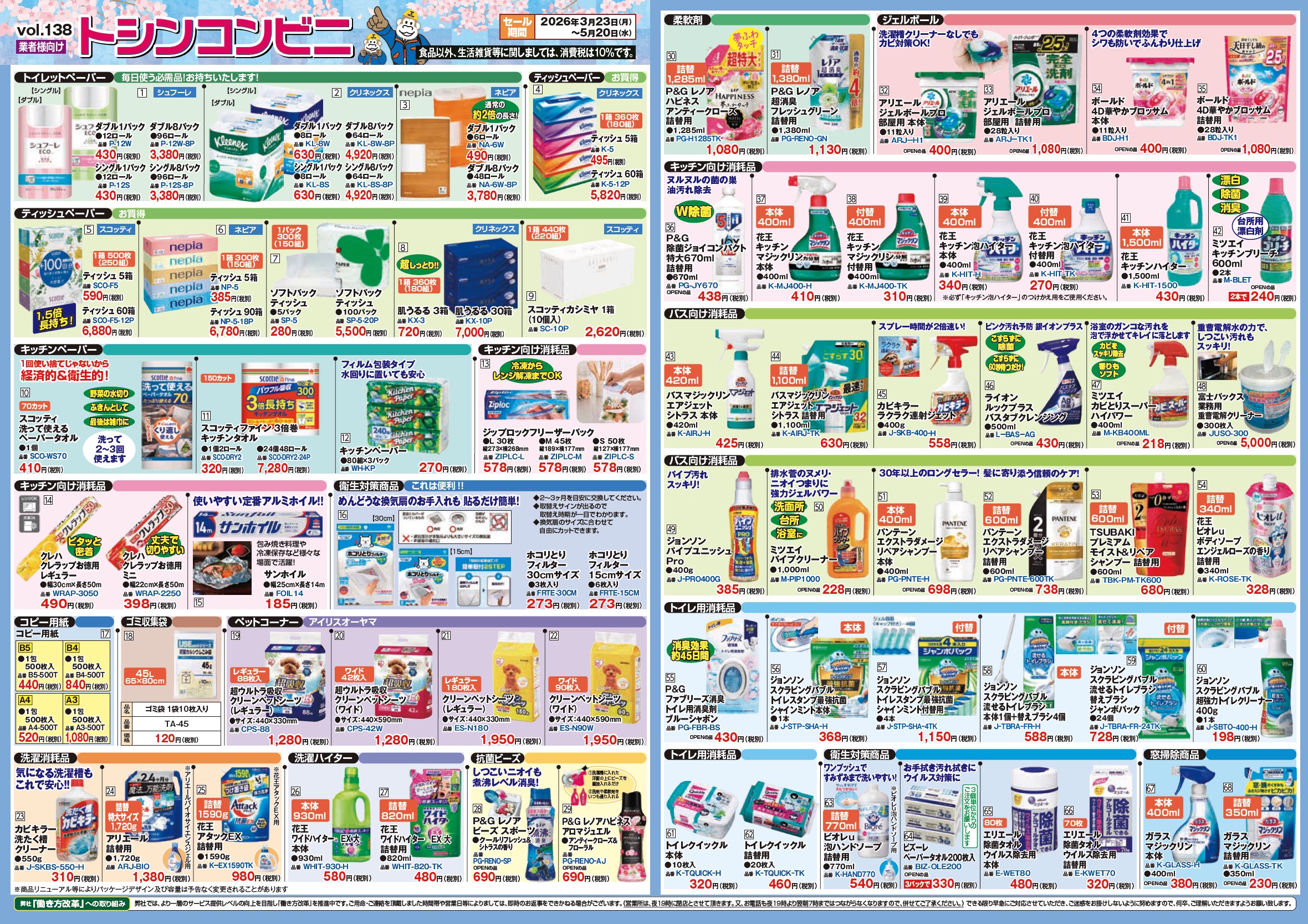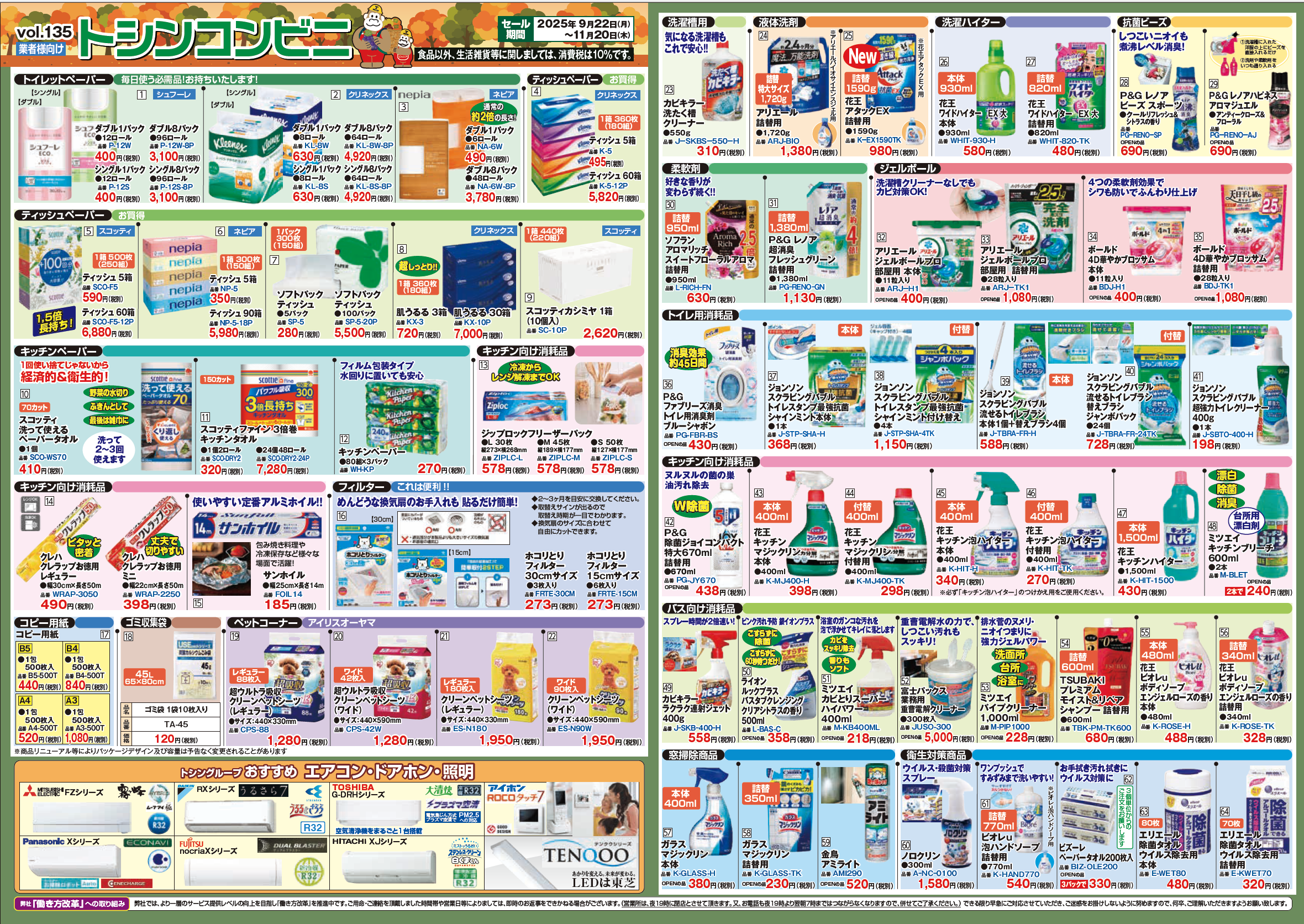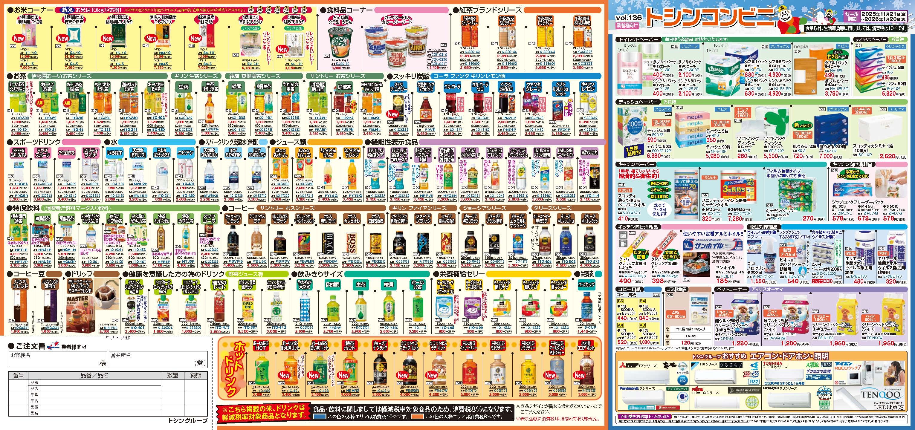 「お客様の営業活動を応援します!」をキャッチフレーズに掲げ、さまざまなサポートを行なっているトシングループでは、お客様の日々の暮らしもサポートしています。それが、「トシンコンビニ」。ご注文いただいた電気設備資材などとともに、各種日用品をお届けするこのサービスは、重いペットボトルやかさ張るトイレットペーパーなどが居ながらにして受け取れるため、多くのお客様にご利用いただいています。