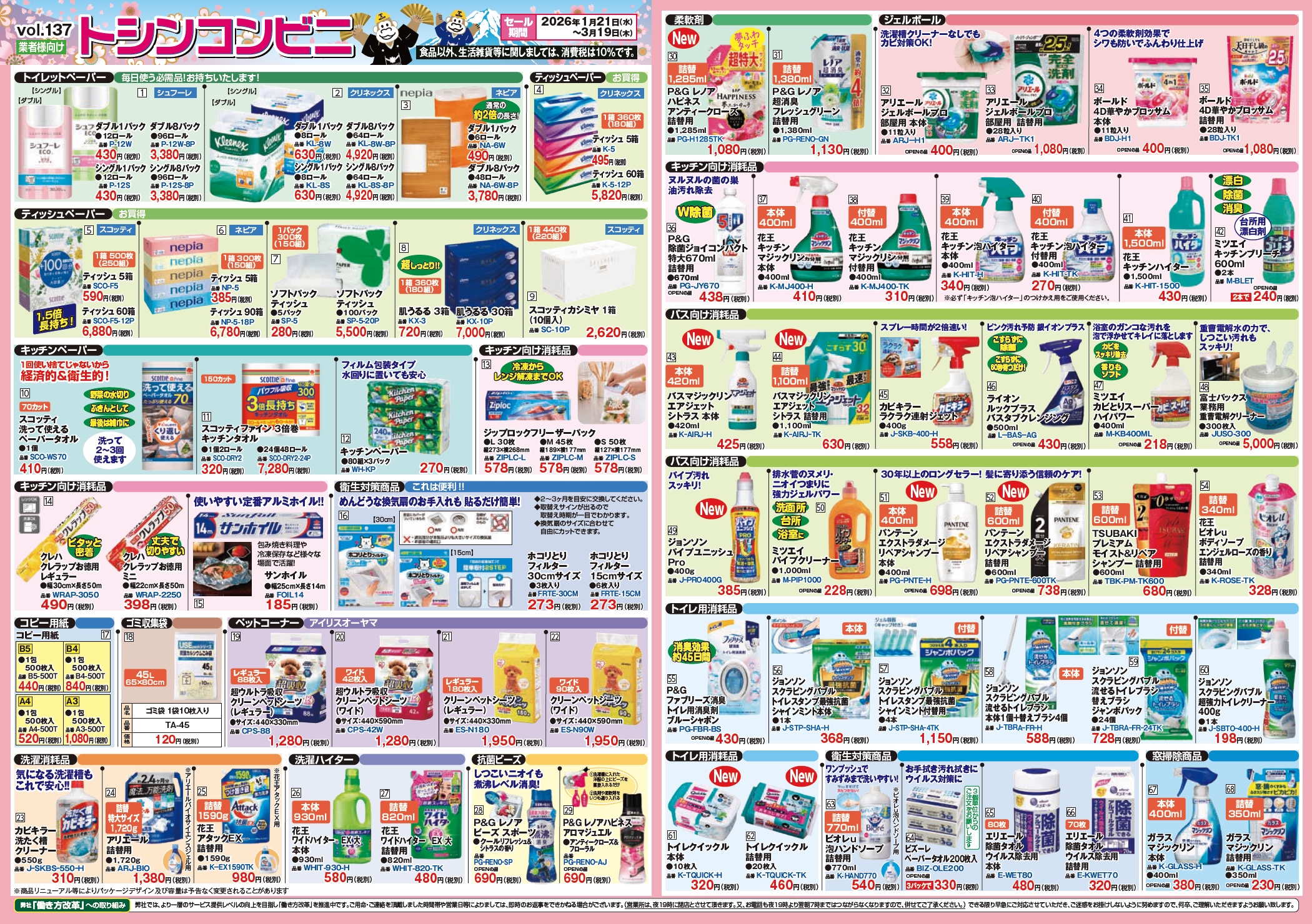 「お客様の営業活動を応援します!」をキャッチフレーズに掲げ、さまざまなサポートを行なっているトシングループでは、お客様の日々の暮らしもサポートしています。それが、「トシンコンビニ」。ご注文いただいた電気設備資材などとともに、各種日用品をお届けするこのサービスは、重いペットボトルやかさ張るトイレットペーパーなどが居ながらにして受け取れるため、多くのお客様にご利用いただいています。